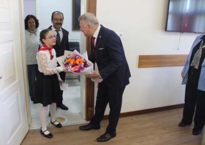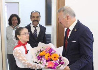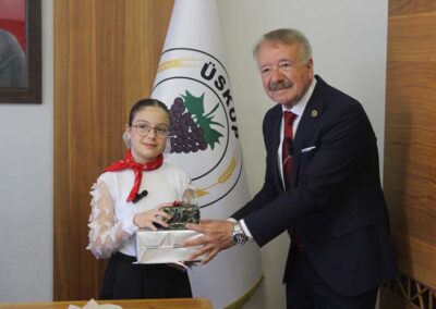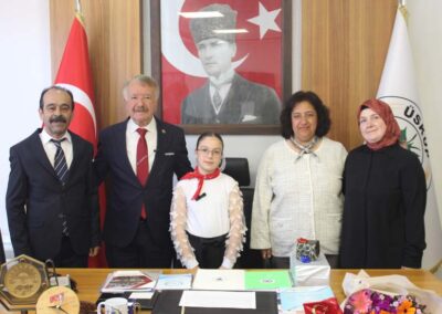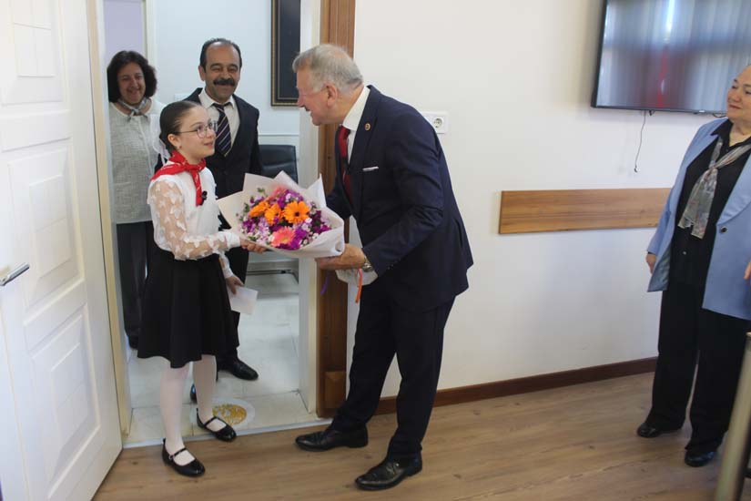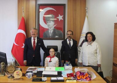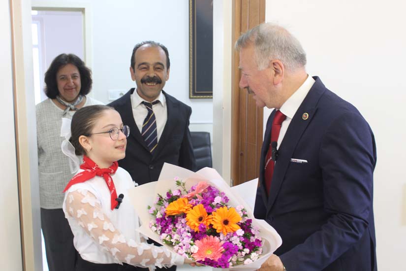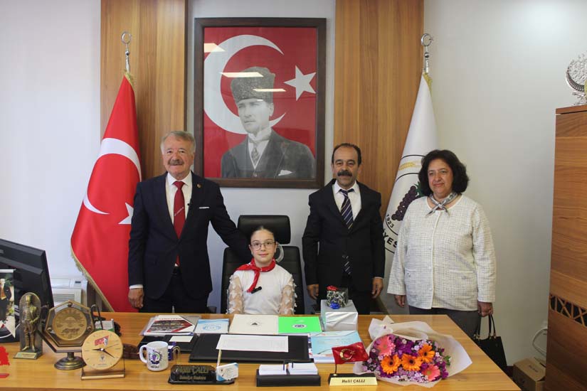 Ziyaretin sonunda Belediye Başkanımız Halil ÇALLI, bu özel günün anısına öğrenci Beyza TANIŞ’ a çeşitli hediyeler takdim etti. Çektirilen hatıra fotoğraflarının ardından program sona erdi.