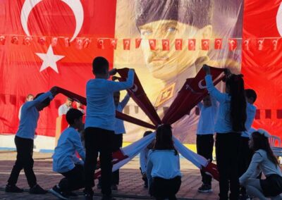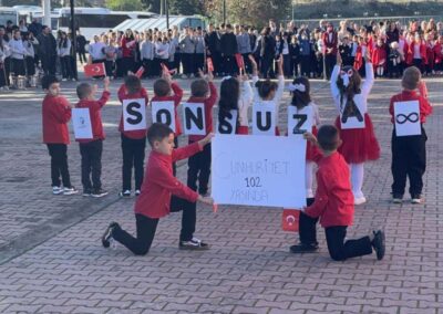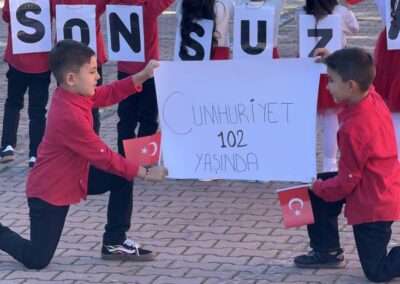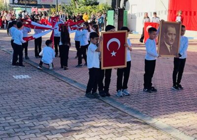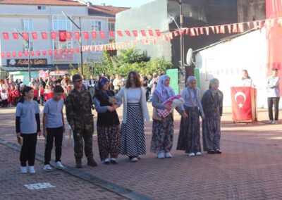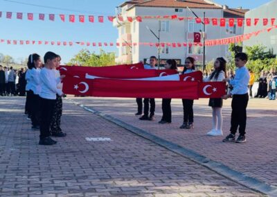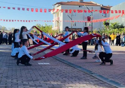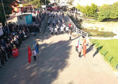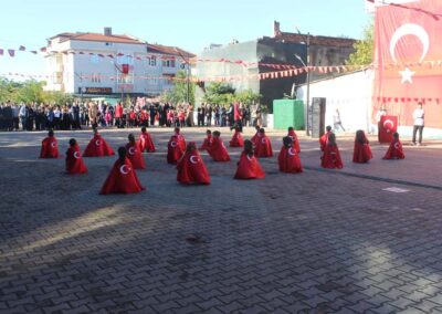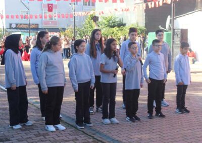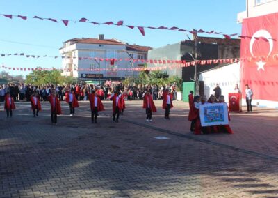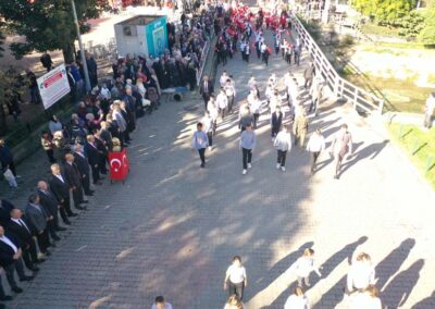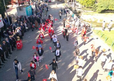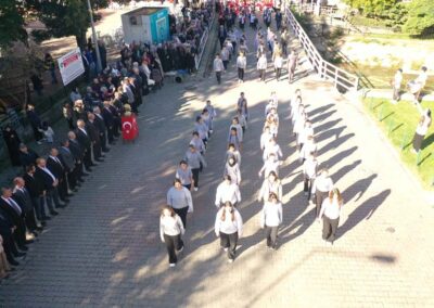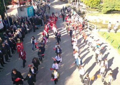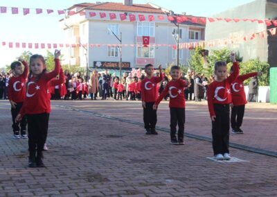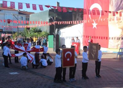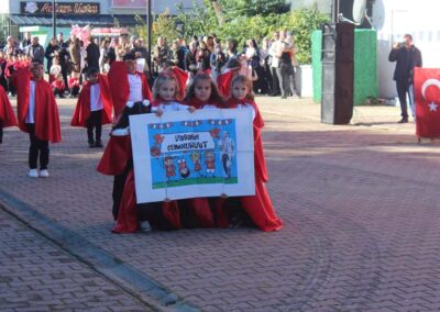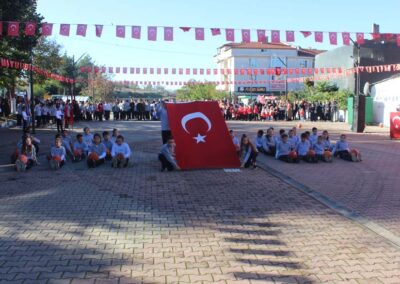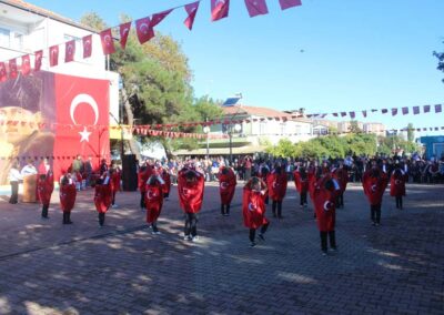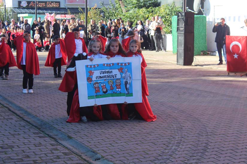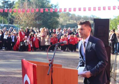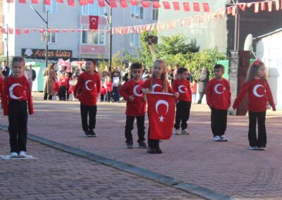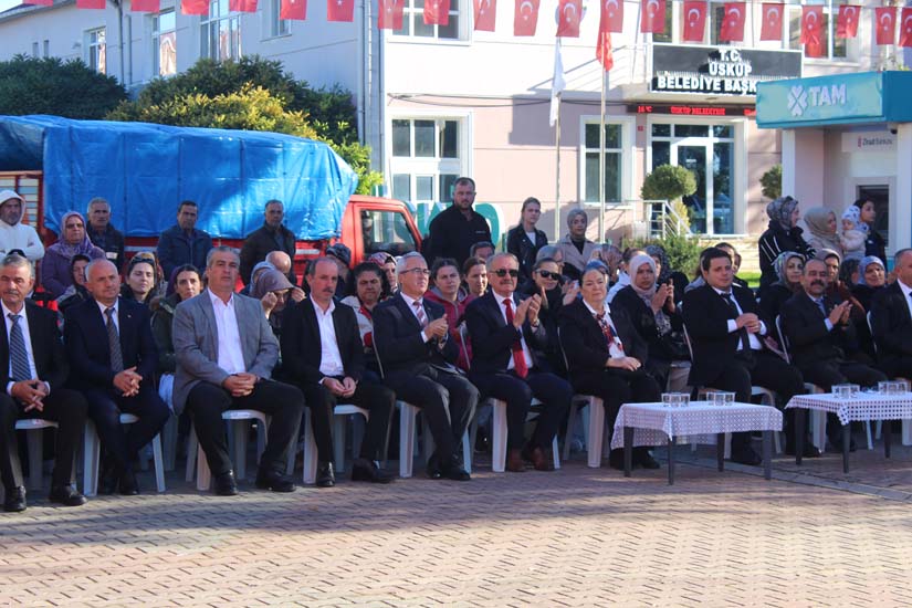Cumhuriyet Bayramımızın 102’ nci yıl dönümü tüm yurtta olduğu gibi beldemizde de çeşitli etkinliklerle ve büyük bir coşkuyla kutlandı. Etkinlikler 28 Ekim Salı günü saat 13:00’ te Atatürk büstüne çelenk konulması ile başladı. 29 Ekim sabahı ise programlar, çarşı meydanındaki kapalı dere üzerinde oluşturulan bayram alanında gerçekleştirildi. Belediye Başkanımız Halil ÇALLI, Üsküp Atatürk Ortaokulu Müdürü Semih OTAZ ve Üsküp Atatürk İlkokulu Müdürü Selami GÜNDÜZ’ ün öğrencilerin ve halkın bayramını kutlamasıyla başlayan etkinlikler saygı duruşu ve okunan İstiklal Marşımız ile devam etti. Günün anlam ve önemini belirten konuşmalar, öğrencilerimizin okuduğu şiirler, öğrencilerimizin yaptığı gösterilerin ardından geçit töreni yapıldı. Geçit törenine belediyemiz de araçlarıyla katılım sağladı.