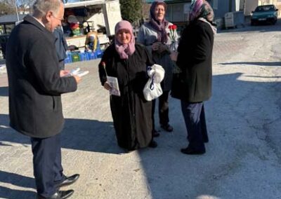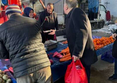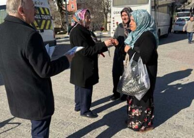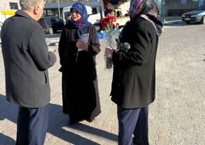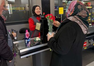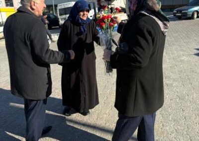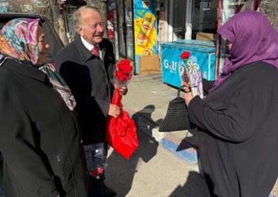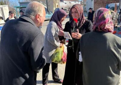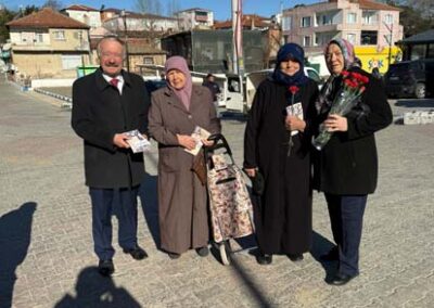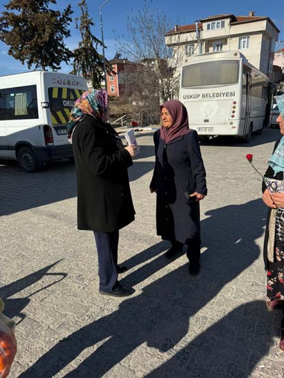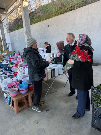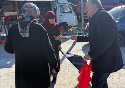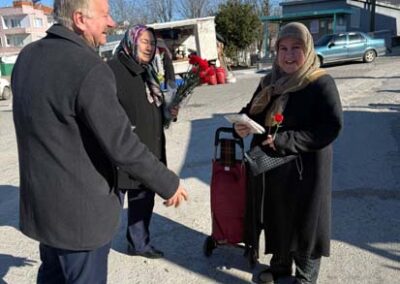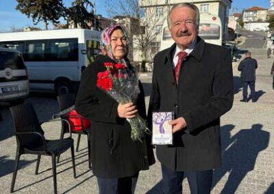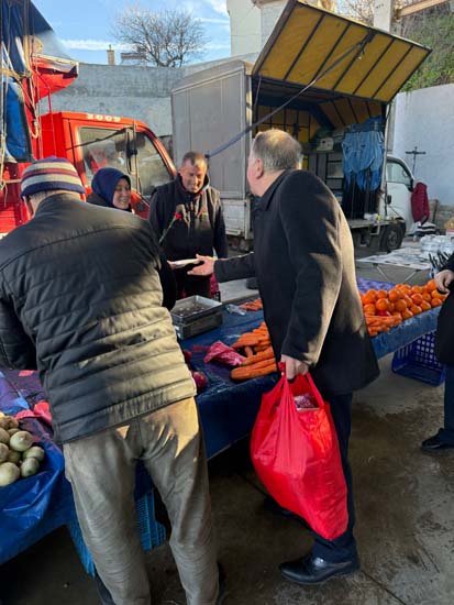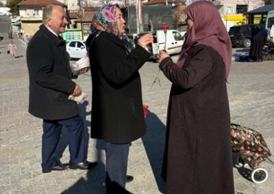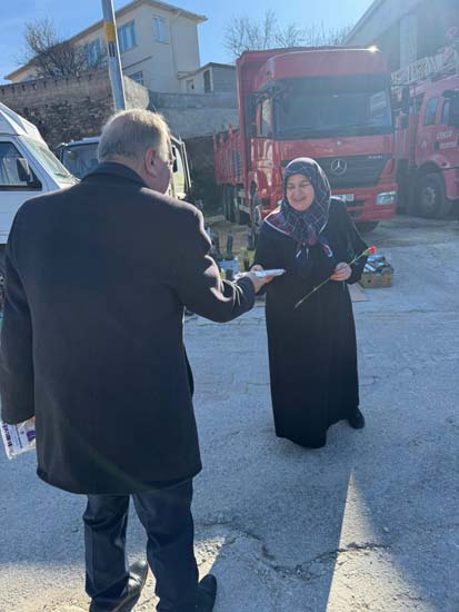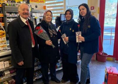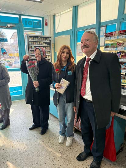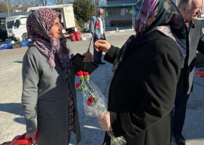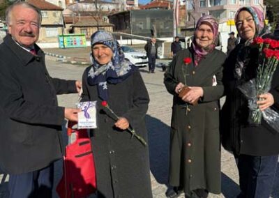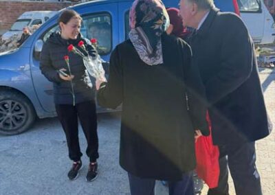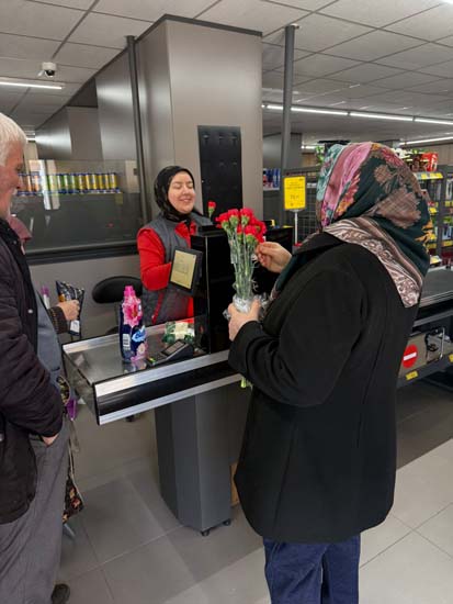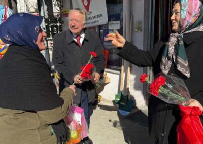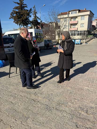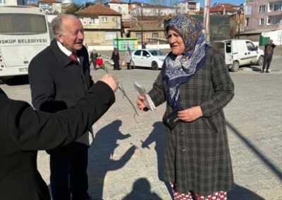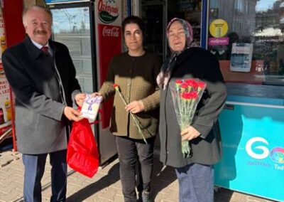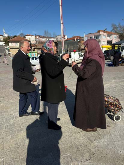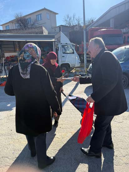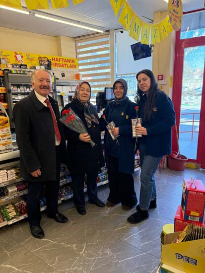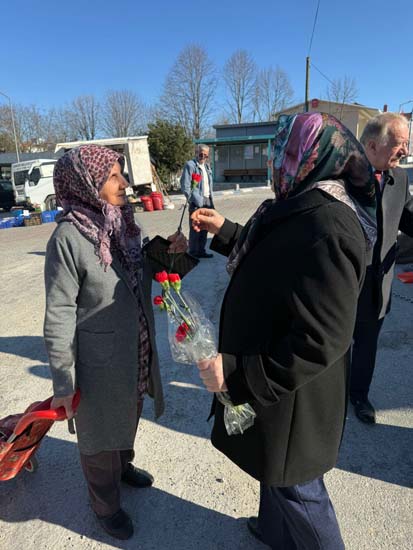 Belediye Başkanımız Halil ÇALLI ve eşi Hanife ÇALLI, 8 Mart Dünya Kadınlar Günü dolayısıyla beldemizdeki kadınlara nezaketin simgesi olan karanfil ve ev yaşamına katkı sunması amaçlanan mutfak önlüklerini hediye ederek günlerini kutladı. Belediye Başkanımız ve eşi, ilk olarak pazar yerini ardından işyerlerini ziyaret etti. Alışveriş yapan kadın vatandaşlarımızla ve çalışan kadınlarla tek tek sohbet eden Belediye Başkanımız ve eşi, karanfil ve önlük dağıtımı ile hem kadınların günün kutladı hem de onların taleplerini dinledi. Kadın vatandaşlarımız hatırlanmaktan duydukları memnuniyeti dile getirerek Belediye Başkanımıza ve eşine teşekkürlerini dile getirdiler.