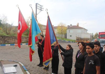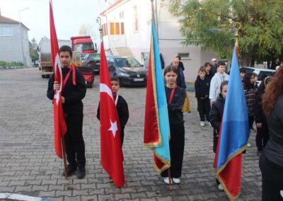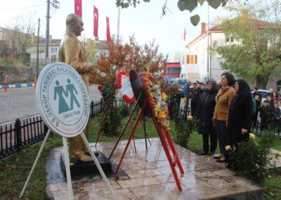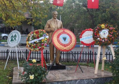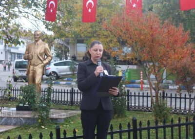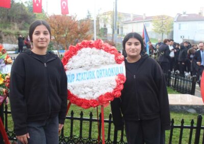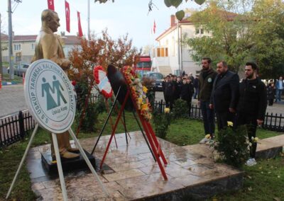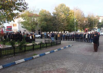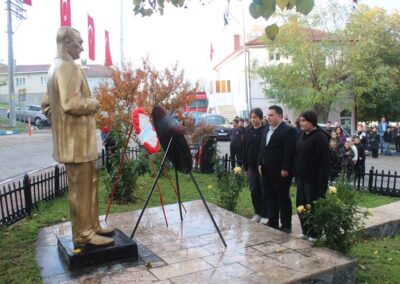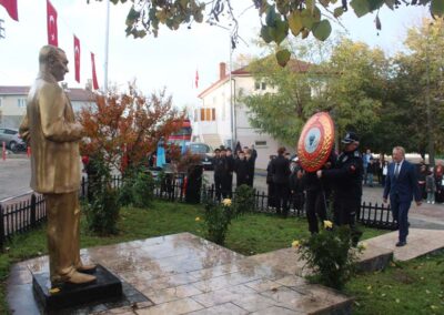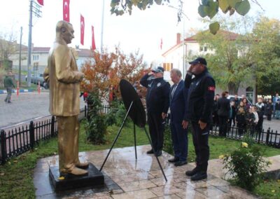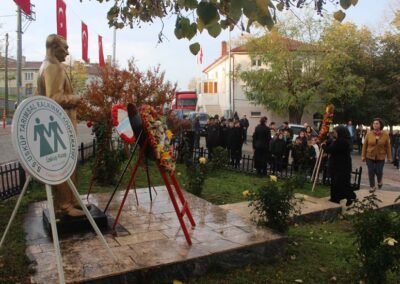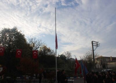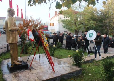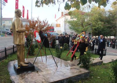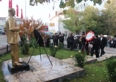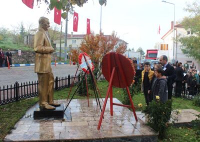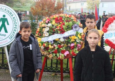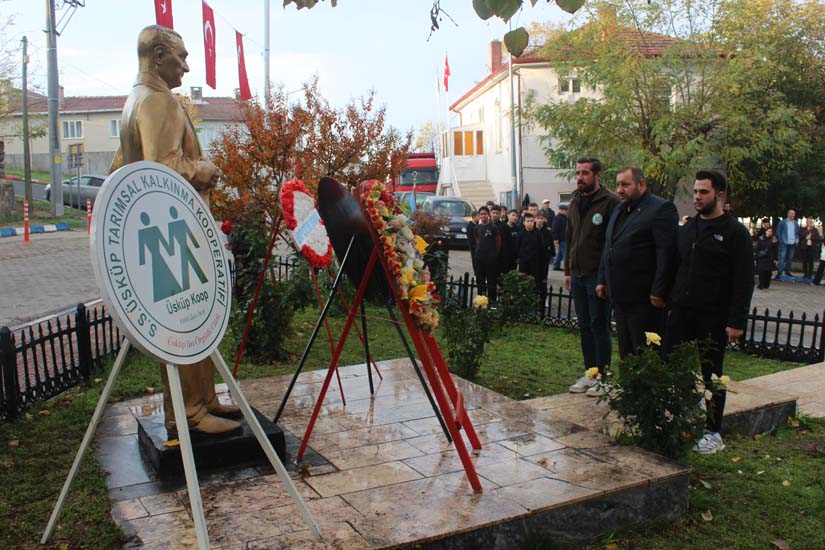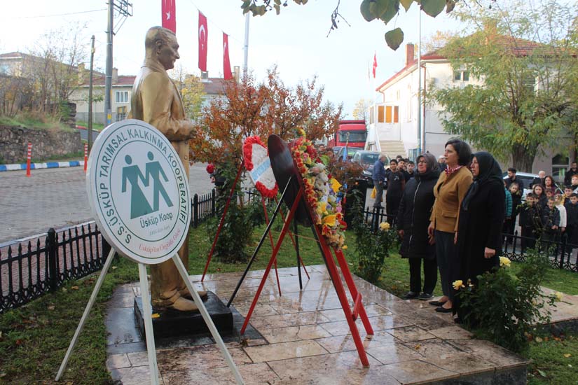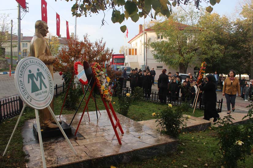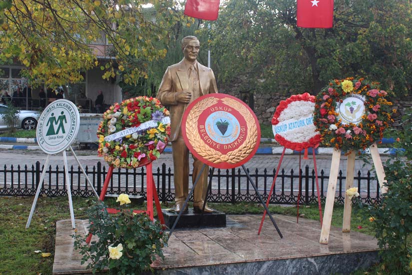 Türkiye Cumhuriyeti’nin kurucusu Gazi Mustafa Kemal ATATÜRK’ ün, aramızdan ayrılışının 87’ nci yıl dönümü dolayısıyla beldemizde çelenk sunma töreni gerçekleştirildi. Gazi Mustafa Kemal ATATÜRK, vefatının yıl dönümünde tüm yurtta olduğu gibi beldemizde de büyük bir saygı ve minnetle anıldı. Anma programı çerçevesinde ilk olarak 08:55’te Belediye Başkanlığımız, Üsküp Atatürk Orta Okulu Müdürlüğü, Üsküp Atatürk İlkokulu Müdürlüğü, S. S. Üsküp Tarımsal Kalkınma Kooperatifi Başkanlığı ve Sınırlı Sorumlu Üsküp Kadın Girişimi Üretim ve İşletme Kooperatifi Başkanlığı Atatürk büstüne çelenklerini sundular. Ardından saat 09:05’i gösterdiğinde belediyemiz hoparlöründen çalan siren sesi ve araçlardan çalınan korna sesleri eşliğinde iki dakikalık saygı duruşu yapıldı. Okunan İstiklal Marşı ve bayrakların göndere çekilerek yarıya indirilmesinin ardından çelenk koyma programı sona erdi. Çelenk töreninin ardından Üsküp Atatürk Ortaokulu ve Üsküp Atatürk İlkokulu öğrencileri tarafından Atatürk büstü önünde saygı nöbeti tutuldu. Özlem ve minnet duygularının yoğun bir şekilde yaşandığı bu günde ATA’mızı bir kez daha rahmet, minnet ve şükranla anıyoruz.